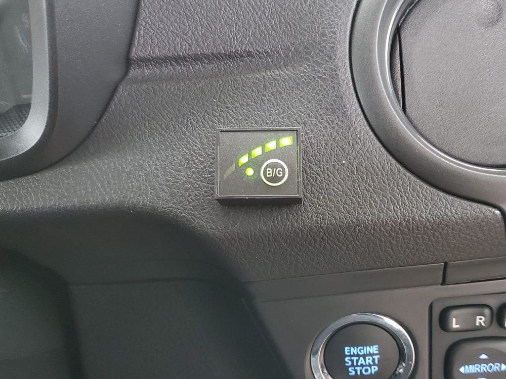 エンジンをかけた時はガソリンで始動し、温度などの条件を満たすと自動でLPガスモードに切り替わります。LPガスとガソリンの走行モードはスイッチで簡単に切り替えができます。