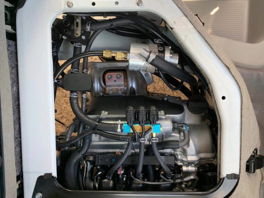 LPガスを最適な濃度でエンジンに送り込むためのインジェクターや、ベーパライザー、パワーと燃費を両立させるための専用コンピューターなどを取り付けます。
